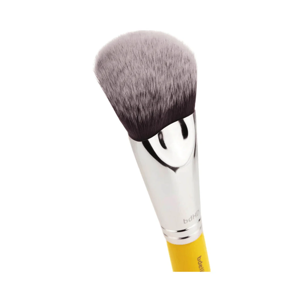 The Patented Studio 988 BDHD Phase I Large Foundation/Powder brush shape enables you to blend and apply foundation with one side of the brush and then use the other side to soften the look with loose or compact powders in a circular motion. The brush is made from wood and vegan synthetic fibers.