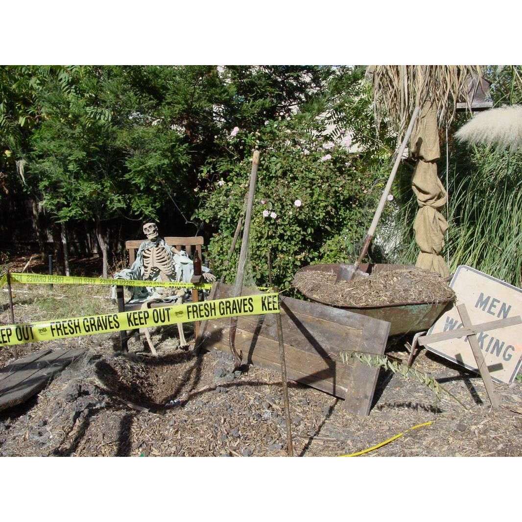 In a scenario like this, you can save some money and still stay on theme with this “Fresh Graves Spooky Tape.” It’s just like it’s real world “Caution” tape sibling that you see police, crime scene investigators and event promoters using. It just happens to have a graven Halloween theme that is just as funny as it is functional.