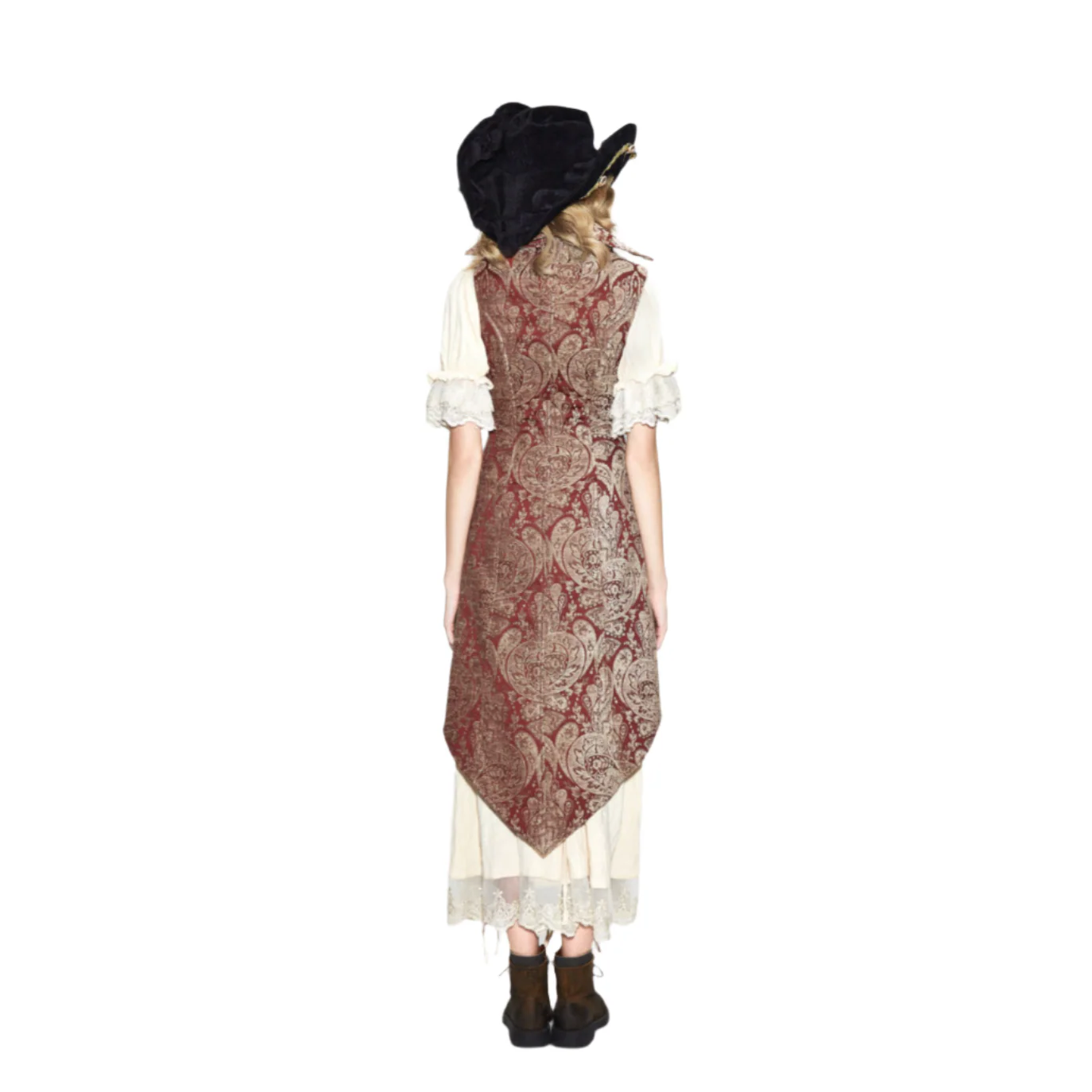 Aye aye, captain! This stylish Red Pirate Sleeveless Jacket features a lace up bodice front and gorgeous gold damask pattern that'll have you looking like the most captivating lass on the seven seas.