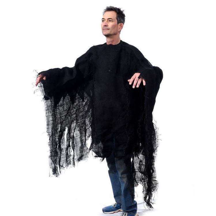 Creepy and raggedy looking rotting shirt. This jute shirt includes two hook and loop closures and a polyester lining. Perfect for any ghoul or grim reaper like costume.